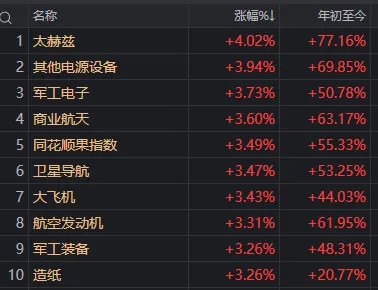 同花顺数据显示,在商业航天板块内,超过30只股票收盘时处于涨停或涨幅≥10%的状态。